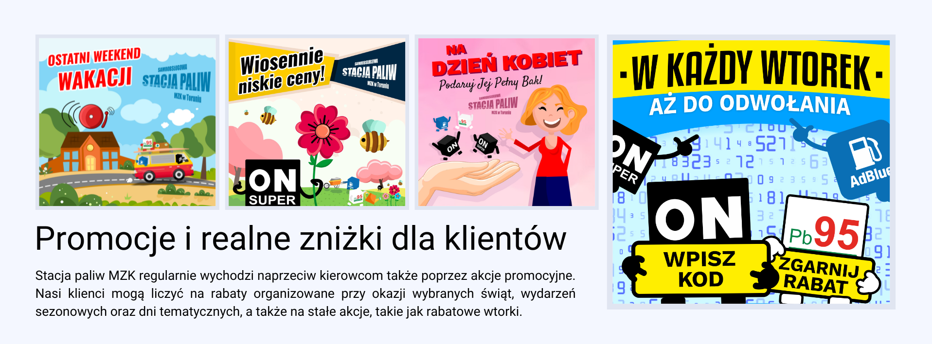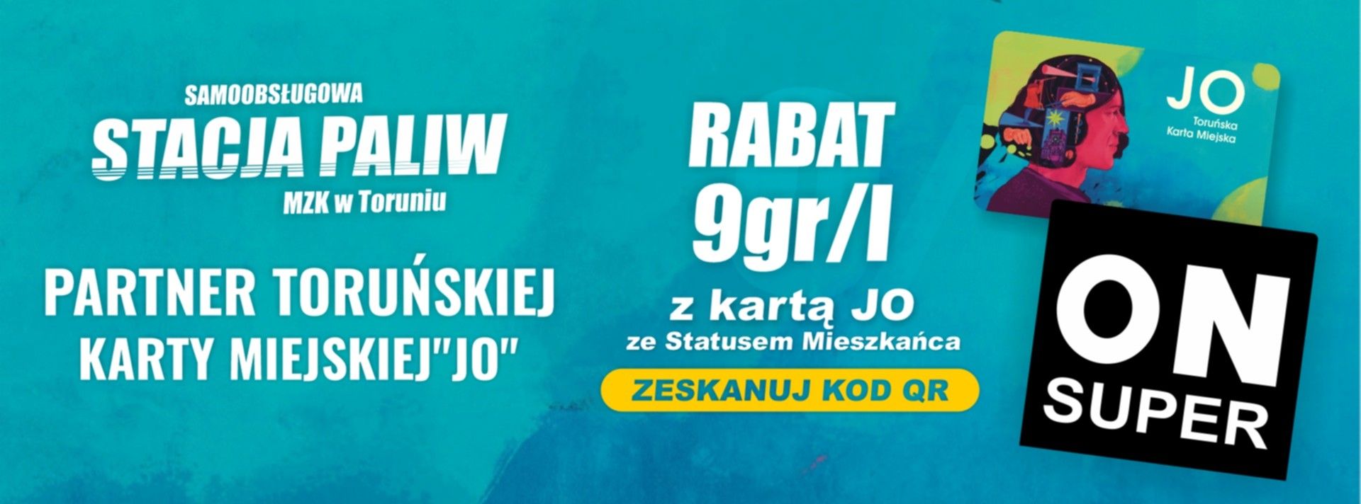 Samoobsługowa Stacja Paliw MZK w Toruniu dołączyła do grona partnerów Toruńskiej Karty Miejskiej JO. W ramach współpracy kierowcy posiadający Kartę Miejską JO ze statusem mieszkańca mogą korzystać ze zniżki sięgającej do 9 groszy za litr na każdy rodzaj paliwa. Rabat naliczany jest od aktualnej ceny paliwa obowiązującej na pylonie stacji (rabat nie łączy się z innymi kodami rabatowymi).